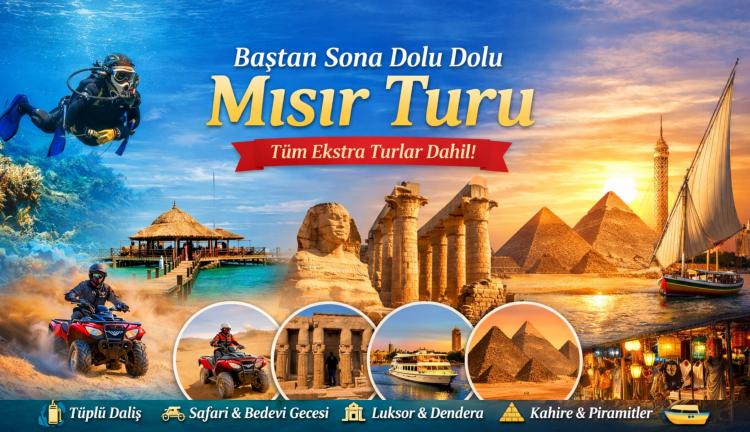 Kızıldeniz’in turkuaz sularından Antik Mısır’ın ihtişamına uzanan, tüm ekstra turlar dahil dopdolu bir keşif yolculuğu! Hurgada’da Orange (Giftun) Adası turu ve tüplü dalış deneyimi, çöl safarisi ve Bedevi eğlencesi ile macera dolu anlar sizi bekliyor. Luksor’da Karnak Tapınağı ve Krallar Vadisi, Dendera Tapınağı; Kahire’de ise Giza Piramitleri, Büyük Sfenks ve Mısır Müzesi ziyaretleriyle tarihin kalbine yolculuk yapıyoruz. Nil Nehri tekne turu ve Khan El Khalili Çarşısı gezisi ile programımızı taçlandırıyoruz.
